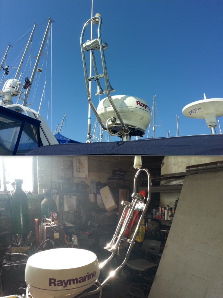 New radar arch fitted to a boat in the Solent.